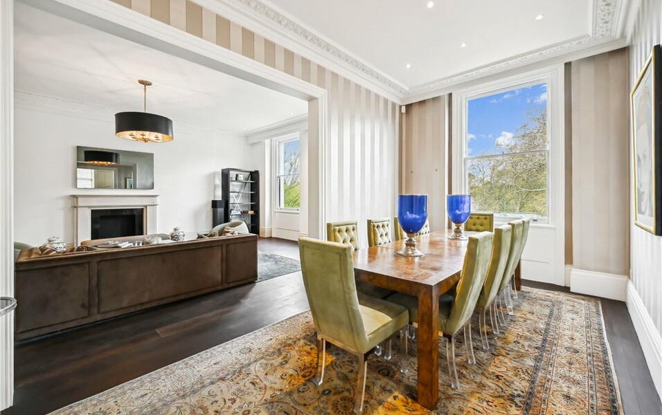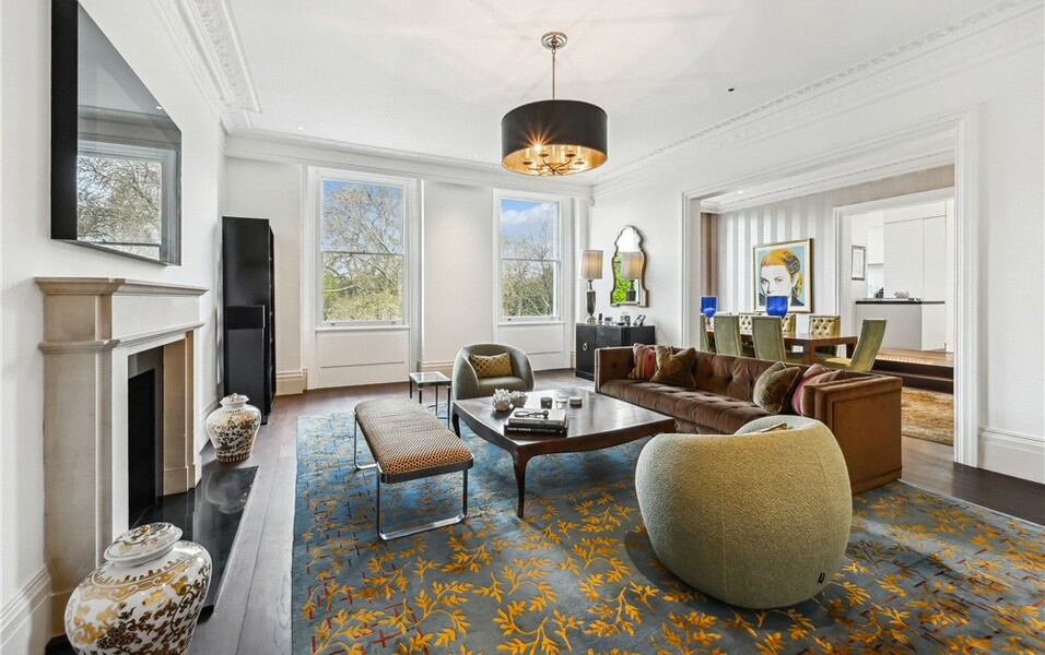 This impressive architecturally designed apartment, overlooking Kensington Gardens, one of the 8 Royal Parks of London, offers 2,560 square feet / 237 sqm of internal living space and enjoys a prime location on the tree lined boulevard of Queen’s Gate, SW7. The apartment is situated on the second floor, with lift, in a beautiful period Grade II Listed building. High ceilings throughout, including an impressive 10’5” / 3.2 metre high ceiling in the reception room. Air conditioning and under floor heating throughout, individually controlled for each room, add to the comfort of this grand apartment. The apartment offers fabulous family living space with particular emphasis on the reception and dining room, which benefits from 3 sash windows with stunning views into Kensington Gardens. The bespoke kitchen also enjoys park views and adjoins the family breakfast area which has east (morning sun) facing windows. A large study/tv room provides an extra living/working space, also with an east facing sash window. The large light filled primary bedroom is at the southern end of the apartment, providing multiple custom built-in wardrobes, shelving and drawers, en-suite shower room with double sink and built in tv. The apartment has 3 further bedrooms with one ‘Jack & Jill’ bathroom and one en-suite shower room plus a guest cloakroom. Overall an amazing light filled living space with great views. Situated at the Kensington Gardens end of Queen’s Gate, this property is ideally located to take advantage of the many local historical attractions, Kensington Palace and The Orangery, The Albert Memorial and Hyde Park. The Albert Hall is moments away, also The Natural History Museum, Science Museum and The Victoria & Albert Museum. Kensington High Street and Knightsbridge are also within walking distance, with a huge variety of shopping, restaurants and bars. Features include: Wide plank Nero Oak flooring. Built in bespoke cabinetry throughout. Control 4 lighting and AV system. Miele and Gaggenau kitchen appliances. Polished black granite kitchen countertops. Piedra Plana Limestone in the bathroom & shower rooms. Local Favourites: Thomas’s Kensington, co-educational independent school (age group 4 to 11). Imperial College, world class university. Launceston Place, fine dining. The Ivy Kensington, restaurant. Whole Foods Store. Cafes and coffee shops on Gloucester Road. Transport: High Street Kensington Tube (Circle & District lines), 950 metres. Gloucester Road Tube (Circle & District lines), 950 metres. Easy access onto the A4 into and out of London by road, 700 metres. Battersea Bridge to cross the Thames, 2.5 kilometres. Commute to Heathrow Airport (17 miles) between 30/40 minutes Tenure: Leasehold. 999 years from 25.12.1976. Service Charge: Approximately £11,000 per annum. Ground Rent: TBA. Local Authority: The Royal Borough of Kensington & Chelsea. Council Tax: Band G. £2,514.97 for 2024/202. EPC: C – 75 Asking Price : Offers In Excess Of £4,950,000.